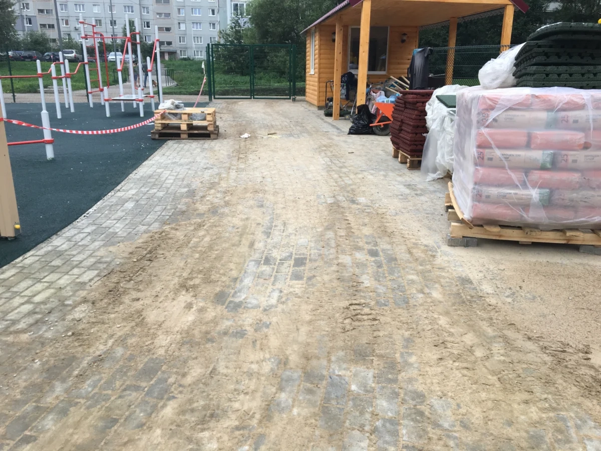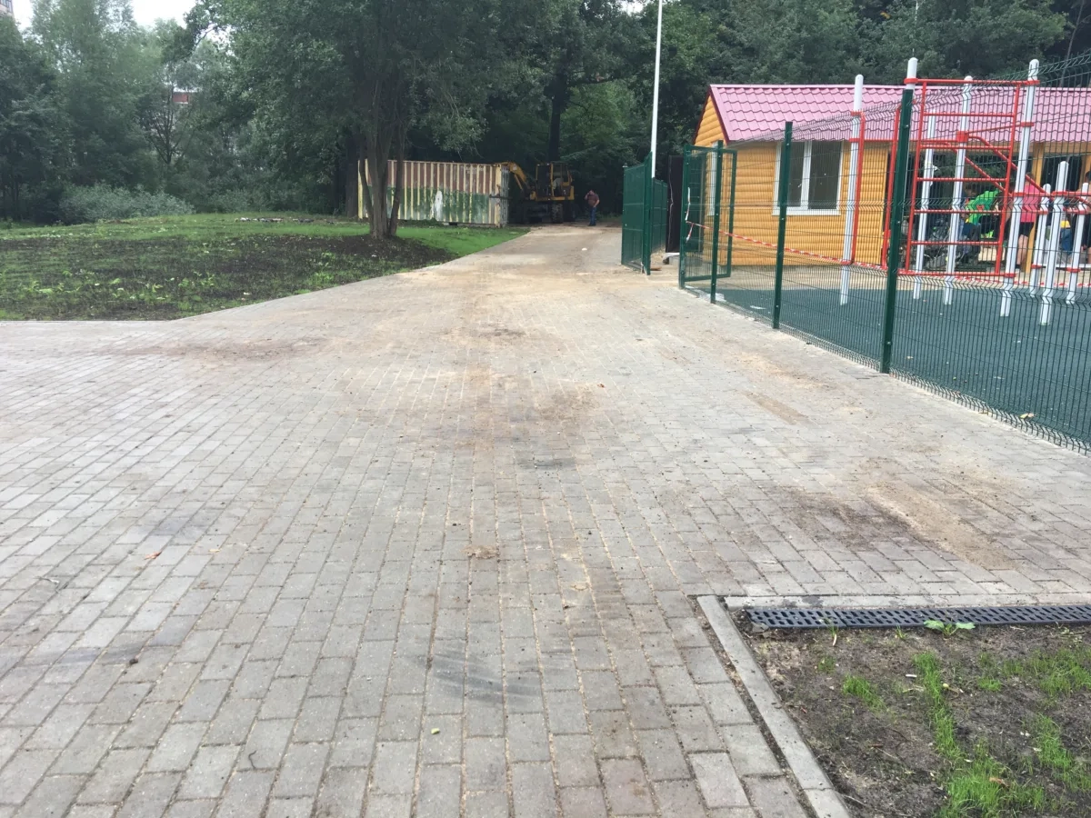 В рамках проекта произведена укладка тротуарной плитки, установка бордюров и обустройство ливневой системы. Создано надежное и безопасное покрытие, обеспечивающее комфортное использование площадки в любое время года.