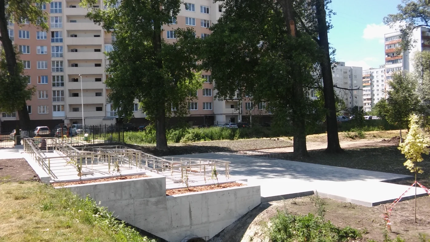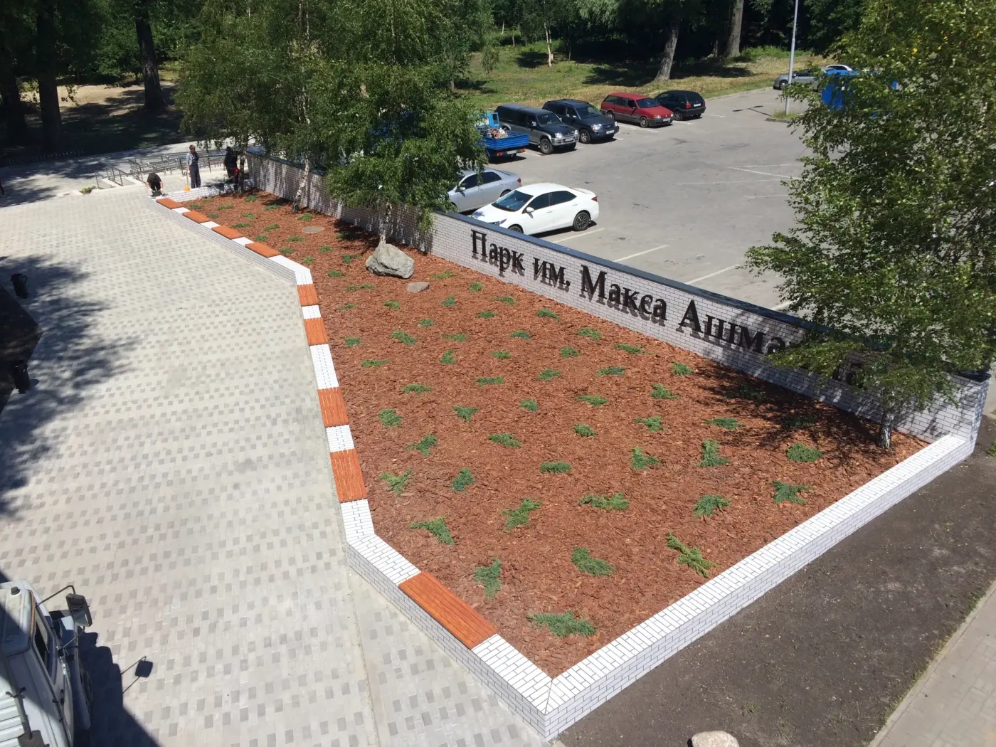 В рамках проекта проведён значительный объём грунтовых работ, выполнена подготовка основания, укладка тротуарной плитки и устройство системы водоотведения. Также реализовано дизайнерское оформление входной группы в парк.