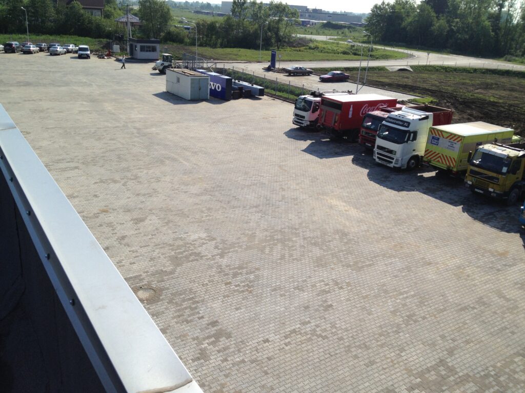 Компания АСБИ выполнила работы по подготовке крупной парковочной зоны для грузовых автомобилей на территории логистического центра в Калининграде.