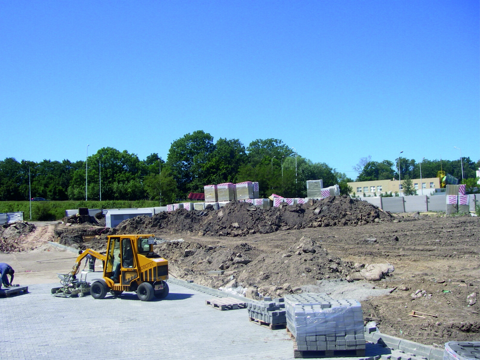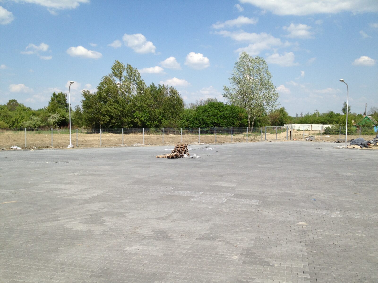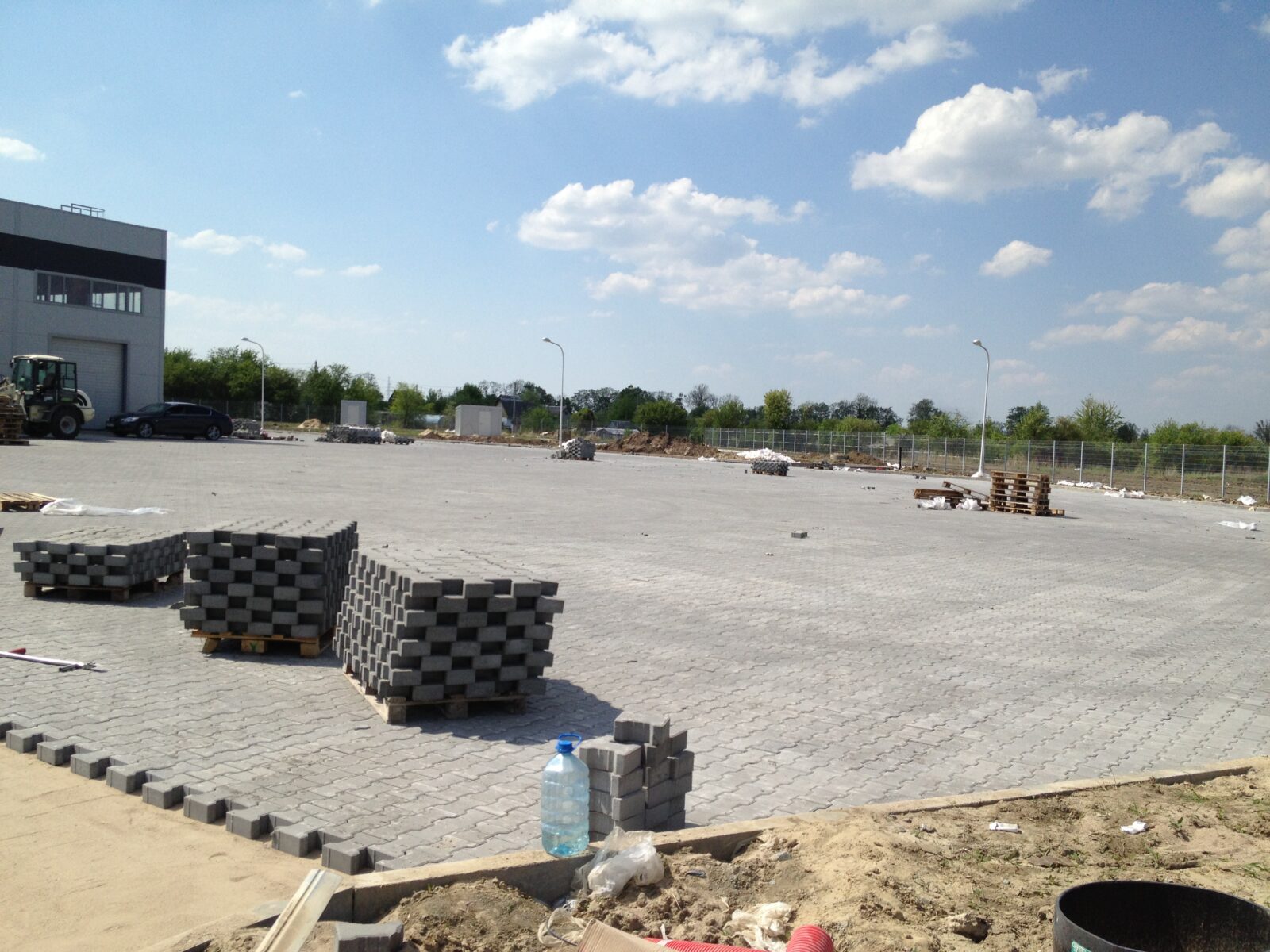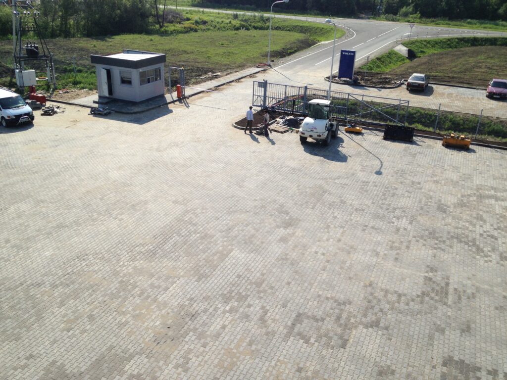 В рамках проекта проведена подготовка основания с учетом интенсивного движения и высоких нагрузок от грузового транспорта, а также выполнена укладка тротуарной плитки. Реализованные решения обеспечивают прочность, устойчивость к износу и долговечность покрытия при постоянной эксплуатации.